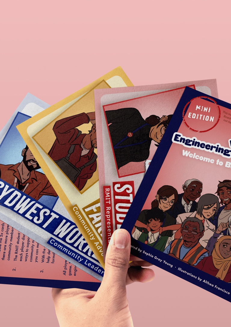'Welcome to:' is a series of card based games that encourages engineering students to learn the foundations of human-centred design through play and fun. These games are designed to be implemented into the classroom, however have lessons that can be learnt in any space.